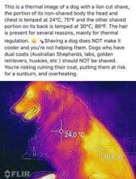 The picture showed that the coat was doing its job properly—it kept the heat from leaving the dog’s skin while the clipped area allowed heat to leave the body faster. It actually showed what the pro side says—clipping dogs keep them cool as it allows heat to leave the body.